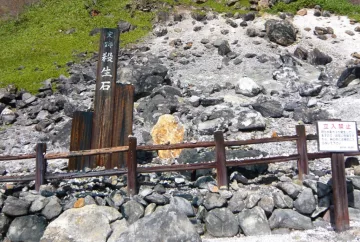 The Sessho-seki is a stone in Japanese mythology that kills anyone who comes into contact with it. The stone is said to contain the ghost of an evil nine-tailed fox who disguised herself as a lovely woman named Tamamo-no-Mae and plotted Emperor Toba’s death. Tamamo-no-Mae’s spirit is said to have been trapped inside the Sessho-seki after she was defeated.
