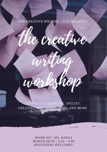 AISG’s Creative Writing Club, also known as Muse, will be holding its first ever writing workshop on Thursday, March 28! It will be held after school in Ms. Barga’s room (317).