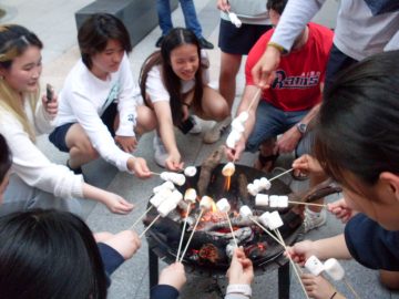 The bonfire aspect of Bonfire Night came at around 6:00pm, when performances paused while audience members were invited to circle around the mini-bonfires and roast marshmallows. This year, although audience members were expected to order waimai dinner as normal, Pulse provided free popcorn and marshmallows.