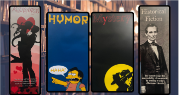 Mr. Boyd’s graphic design high school class was assigned the project of creating graphic displays for each genre section in the library. According to Mr. Boyd, “[they] are a class that does projects for different groups out there and [they] treat it as if it is like a real-life project.” The process consisted of them directly going to Mrs. Navis as if she were one of their clients and ask for any specific preferences she had for the posters. This activity was suggested by Mrs. Navis after she got the idea from a magazine and she “thought it would be a great idea to decorate the library.”