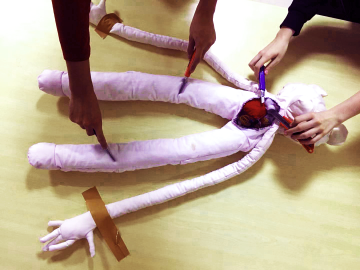 Leon’s Vivisection ft. Noodlebear is a photograph of a stuffed bear being operated on.